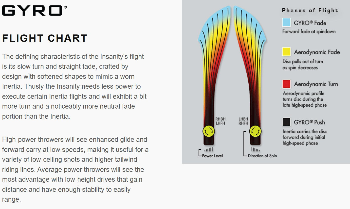 The Insanity is best described as a worn-in MVP Inertia, with a slightly more high-speed turn and a diminished fade. For average power throwers, the Insanity will be remarkably straight, while high power throwers can execute precise flip and turnover lines with ease. Whether you’re looking for that sweet-spot worn disc flight, or you’re looking to achieve bigger Inertia lines with less power, give Insanity a shot.