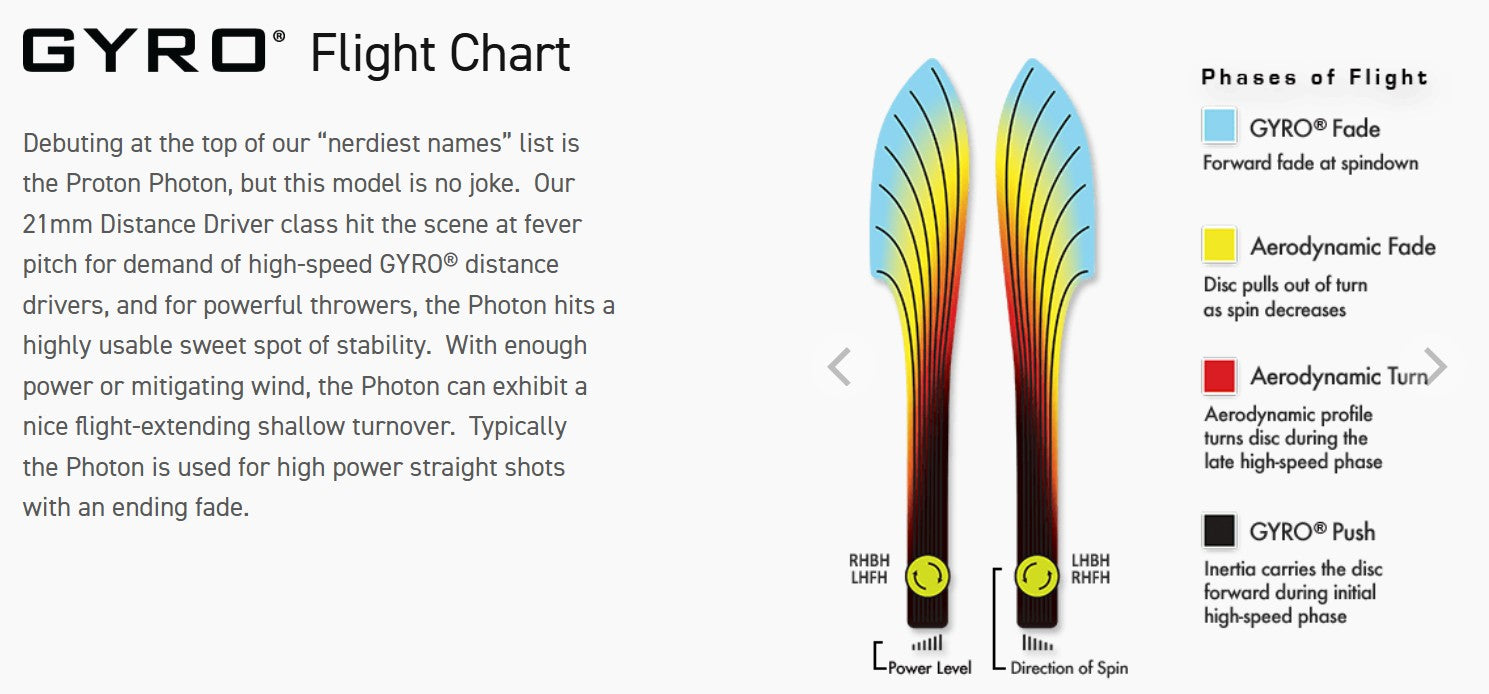 The Photon is best described as a longer Tesla, with power throwers able to achieve some flight-extending turn, and all throwers getting a reliable fade. The Photon is naturally headwind resistant but average power throwers can use a headwind to emulate those extended flights of high power throwers.