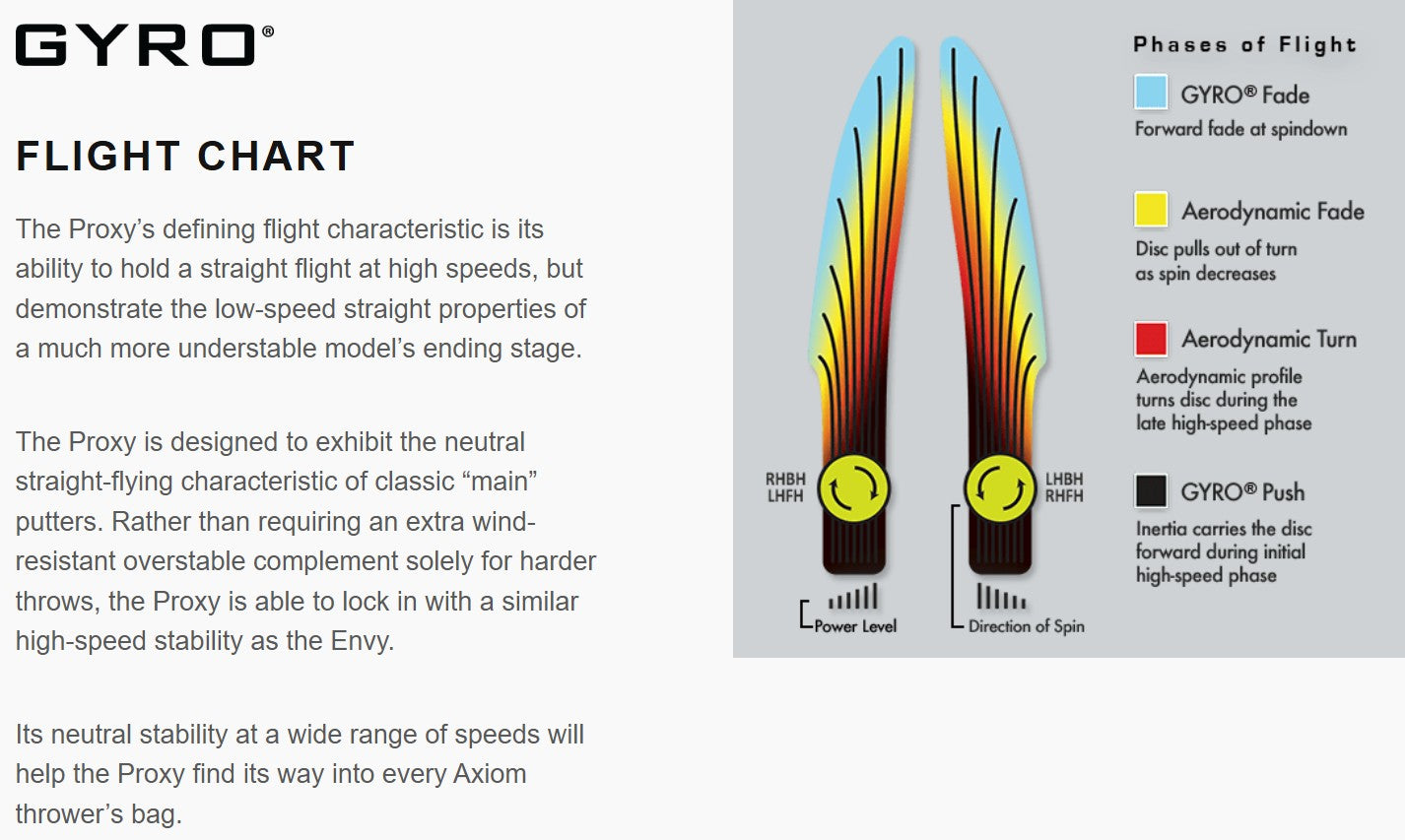The Proxy shares the Envy mold’s core, lending the same low-profile feel and solid grip, along with a short wing width and wide flight plate diameter for superior glide. The Proxy sets itself apart from the Envy with a remarkably straight-forward-fading finish. A bit of high-speed turn potential allows the Proxy’s lines to be manipulated over a broad range of power and helps less powerful throwers achieve straight putter drives.